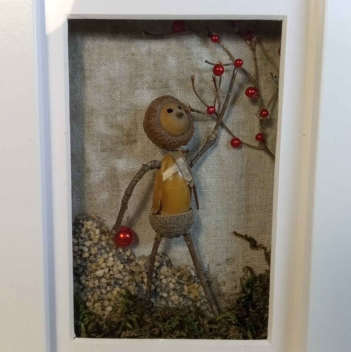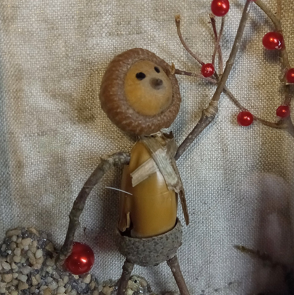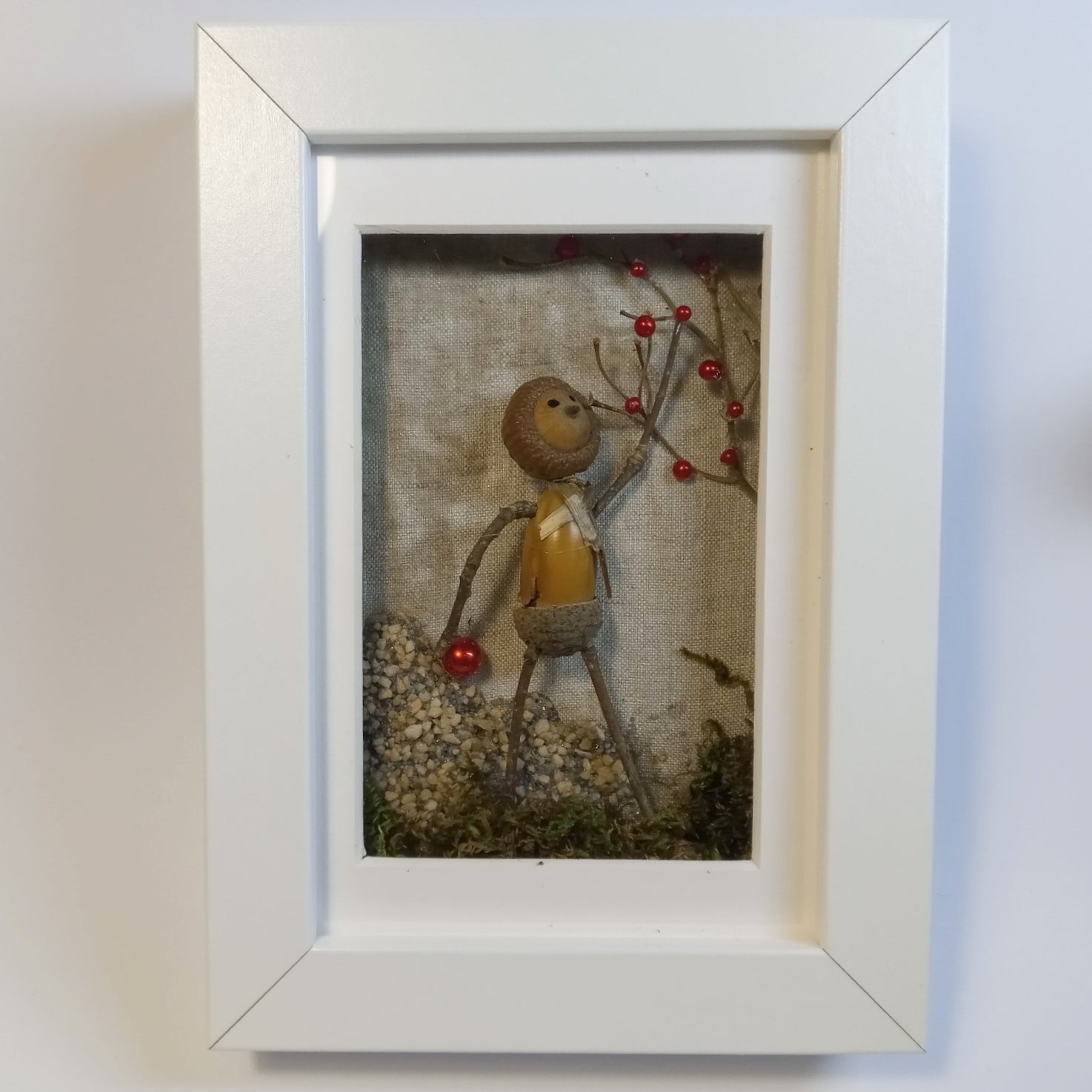 Acorns, Becorns... I call them Faloots - Lovely fairy figurine, made of natural materials and safely framed as a wall art. You can use it as a wall art or place on a table.