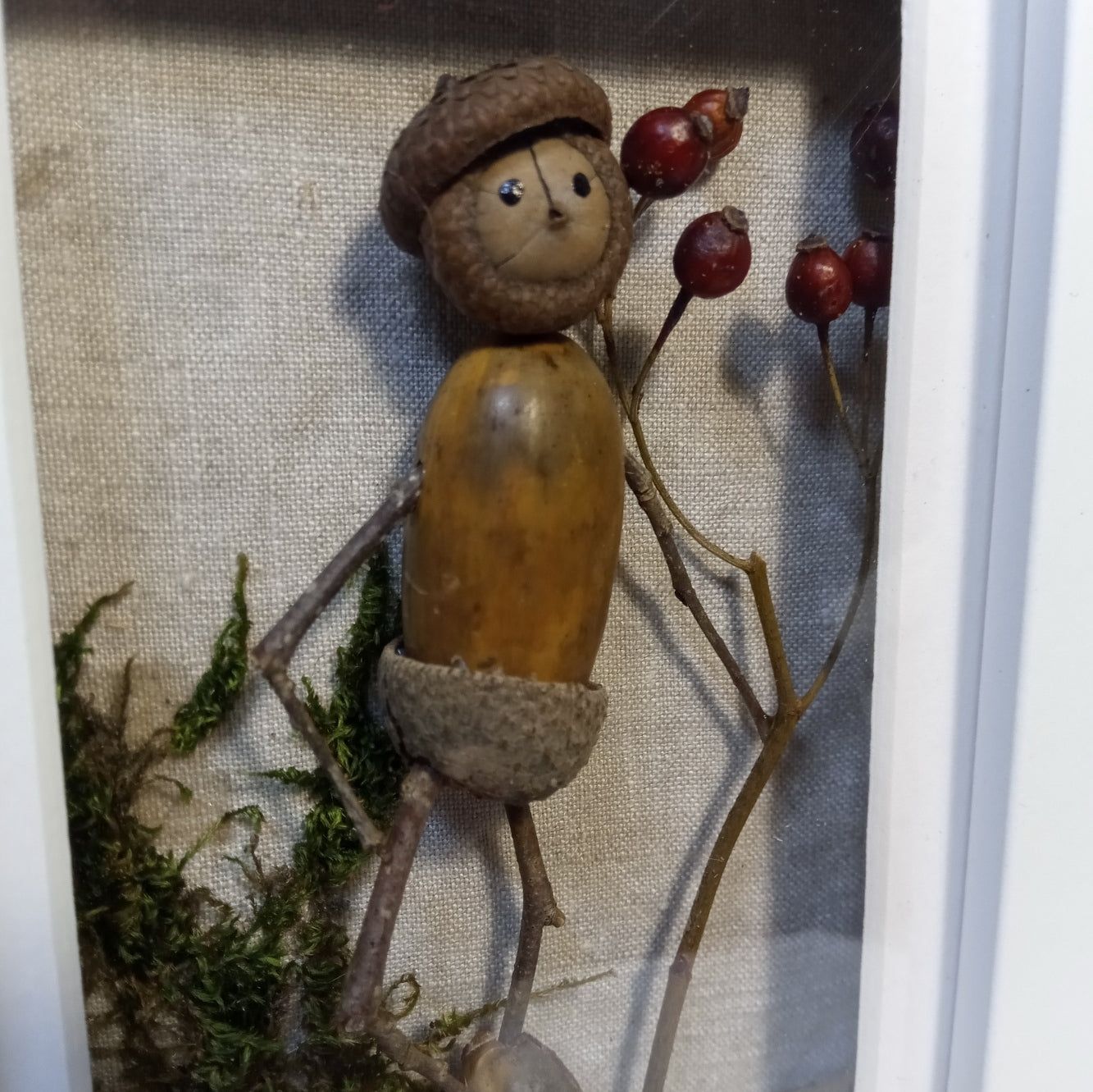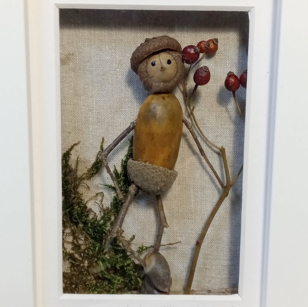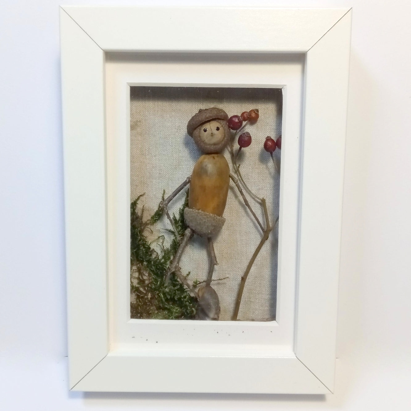Acorns, Becorns... I call them Faloots - Lovely fairy figurine, made of natural materials and safely framed as a wall art. You can use it as a wall art or place on a table.